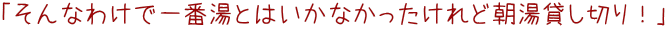 | 浴室には5-6人の先客さんがおられましたが、あくまでわたしゃのんびりと‥よっしゃそぉーら来たドラ三ハネ満! |