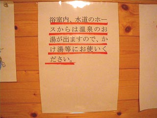 トータルの浴感は「ツル」と査定(笑)。ちなみに広い浴槽は加熱湯なのですが、予想通りアワアワ成分が吹っ飛んでいたので「スベ」レベルです。そういえば女将さんは「今日は男湯が狭い方云々で」と恐縮しておられましたが、この小さい源泉湯船には好感バリバリでした。 |