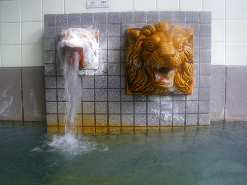 ![]() − その7 「お勉強」のあとさらに2湯、B級グルメタンノーのあとこの日の宿へ − ![]() 白&茶のライオン湯口が絶妙!でも同時設置の形状なのに雄ライオンは何で休んでる?(笑)。 |