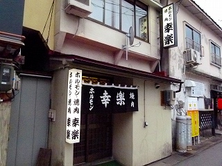 そんなわけでやって来ました鹿角のホルモン名店「幸楽」さん。思ったほど大きくないんだなというのが最初の印象でしたが、実は通り沿いに系列店があり、たとえば冷麺を頼むと「あちらのお店から配達されて来る」という感じで分業が進んでいるようでした(笑)。 入店したのがほぼ17:00ジャストということで先客さんはなし‥なのですが、地元の皆さんが「持ち帰り用」にちょこちょことお越しになります。美味しいんだろなーと結構期待度アップ。 |