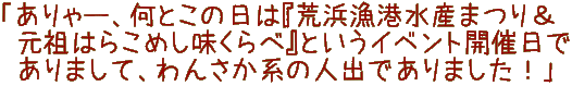 ということは温泉もすごいことになっていそうな予感‥というわけでこちらへの立ち寄り入浴はまた今度ということにして、とりあえずお祭りの方を見てみることに方針転換。何でも震災後初めて復活したお祭りなのだとか。 |