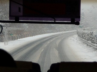 そんなわけで着々と路面の雪が増しつつある東北道をずんずんと北上します!スタッドレスタイヤを履いているのでこのくらいの積雪なら余裕です! |