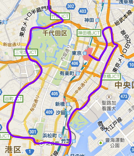 | 何だ何だ、何か「不思議な力」がこのバスをあらぬ方向に引っ張っているのでありましょうか?(笑)。これで谷町JCTから3号渋谷線(東名高速方面)に入ったりしたらある意味ホンモノだなぁなどと思ったりしましたが、いかんせん本日われわれが目指しているのはあくまで奥会津の只見町なんですからっ! でもさすがに谷町JCTであらぬ方向に進むことはなくそのまま首都環状線を霞ヶ関方面へ。あのー、この時点ですでに環状線を半周しているんですけれど(大笑)。で、三宅坂JCTもそのまま環状線方面へ(もしかしたら新宿方面に進んで中環経由で北上するのかなとも思っていたんですが)。 さてもうすぐ1周完了だぞというすぐ手前の竹橋JCTにてようやく環状線を離脱!5号池袋線へと進路を変更し、ようやくこれで「北上」への目処がたちました。このあと江北JCT経由でようやく川口線−東北自動車道へと進んだわけなのですが、ええっとそもそも‥ |