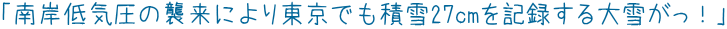 となればいったいナニを躊躇することがありましょうか!?というわけで即座に「はいハイお願いします!」と鼻息荒く正式エントリーを高らかに宣言というかお願いし、振り込み用紙到着の翌日にさっそく郵便局に行って払い込みをカンリョーしたというわけです。うむうむ、こりゃ楽しみだぞぉ! しかし神様はしっかりある種の試練を用意してくれておりました。このツアー出発日の2014/2/8(土)、関東にナニがあったかといえば‥ |