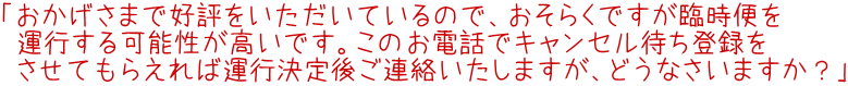 というわけで即座に関係部署に電話を入れたわけなのですが、Takemaのネットアンテナの感度が悪かったということなのかすでに満員御礼。ありゃまぁしょうがないなと思いきや、電話先の担当者様からは思いもかけないお言葉が返ってきました。それは‥ |