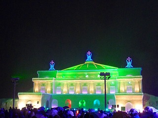 さて、この只見ふるさとの雪まつりに来る前は「花火もあるっていうし、冬の観光振興策なんだろうな」と勝手に思いこんでいたのですが、考えてみれば第42回という歴史ある行事ですし、もともとはこのあとで出てくる郷土の年中行事がルーツで、それにさまざまなイベント性が加味されて現在に至るということなのかも知れません。だから「さっぽろ雪まつり」のように数多くの雪像氷像のような派手さはないけれど、ただ見るだけではなく「町民参加型」のほのぼのしたお祭りになっているのでしょうね。われわれ観光客は「そこにおじゃまさせていただきその時だけ臨時町民気分にひたらせてもらう」というくらいのスタンスが一番いいような気がします(もちろん部外者だからといってアウェイ感を感じるなんてことは一切ありません)。 |
