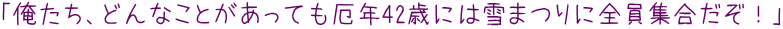 40歳を越えてこのノリというか団結。かなーり好きだなぁ。でも雪の中サラシ1枚というのは本当に寒そうです。 |
