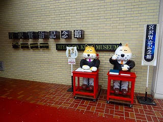 のっけから話がゴーイングマイウェイ系に突っ走りましたがお許しを。で、記念館内の展示内容についてはここで紹介するにおよばずなので(当然)、入口の猫くんたちだけで勘弁です(左上画像マウスオンで別画像に変わります)。でも、来てよかったなと。なおここで「雨にもマケズ‥」のタオルを購入したのはここだけのヒミツです(今後の湯めぐりタオルとしてデビュー予定。今のがだいぶへたってきているので‥)。 |