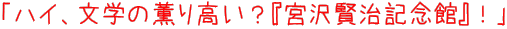 あ、「?」を付したのは、宮沢賢治自身が文学小説で生計を立てていたわけではないからなのです(生前の賢治は作家としてはほとんど評価されていなかった)。というか、自分のいろいろな思いを小説や童話に綴っていたという方がいいのかなと思います。自分の配合した肥料に対し「これが効かなかったら代金を弁償します」と宣言したくだりにその思いを新たにしました。 |