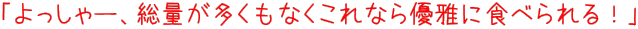 ええっと、最近一部の方々から「Takema、少食っていうけれどその割に結構(な量を)食べてるではないか!」との疑惑系発言をいただいております。いやですね、食べようと思えば食べられるんですよ。その昔の山岳部時代は「メシの一粒血の一滴」とやらで、間違って水ではなく石油をも混入して炊いてしまった飯も「大丈夫ですよウマイです」と、おのれのミスを認めたくないがゆえにばくばく食べていたこともありますし(あ、それとこれとは話が違いますね)。 |