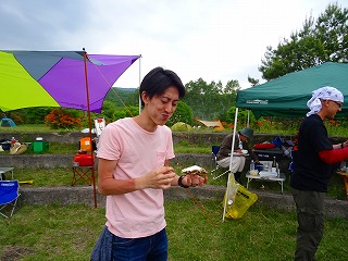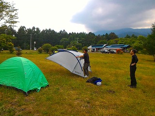 | この頃になると空にはまだらな雲がやってきました。そう、この日は「日中は晴れるけれども夕方以降山沿いではにわか雨=夕立があるかも」という予報だったのです。でもこのくらいの雲なら大丈夫かなという感じです。実際のところすっかり暗くなってからほんのわずかに雨粒の落下を感じましたが(by Takema頭皮)、気づかなかった方も多いのでは? さてそんなわけでキャンプ料金および生牡蠣寸志の受け付け開始です。と、ここで今回&次回以降参加の皆さまにご連絡です! |