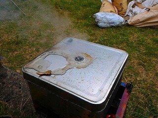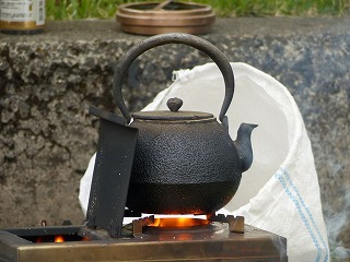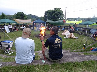 | そんなわけでシブく薪ストーブに鉄瓶をかける方もおられました(ほのぼの)。あ、Takemaはぱぱさんと何やらのんびりお話し中です。やっぱりこのくらいの人数だと主催者としても落ち着きますね(大したことはやってませんが)。でも「万がいち100人とか集まったらスゴイだろうな」とも思ったりするのですが、たぶんTakemaが勝手にパンクして収拾が付かなくなってしまうことでしょう。 あ、だからといって自分は丁寧に各テントやタープを回ったりはしませんよ。このキャンプでは「乾杯」が終わったら「あとはご自由に」なのです。でも、「初めて同士の方々が数年後には『仲間』になっていてくれたりする」のを見るととても嬉しいです。今回初参加だった月光さんご家族も、今後ぜひまた来ていただければなぁと願っております(うふふ)。 |