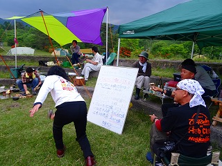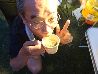 | 今年の参加者の皆さまは「大人」ですねぇ。だって一升瓶がないもん(笑)。でも自分たちも含め毎年ちゃんと齢(よわい)を重ねまくっていますから、お酒の量はこれくらいでいいのかも。ヘロヘロになって他の人に迷惑をかけてもいけませんしね。 あ、かつて猿ヶ京の非公式オフキャンプの時に、酔った状態で「翌朝のため」とバイクの向きだけ変えておこうと思った挙げ句コカしかけたTakemaを助けてくださった皆さまありがとうございます(苦笑)。じぇったい無理だって冷静に考えれば! |