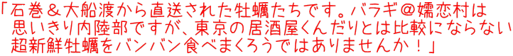 ![]() そんなわけで始まりました生牡蠣オープン&バータイム! |