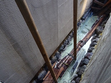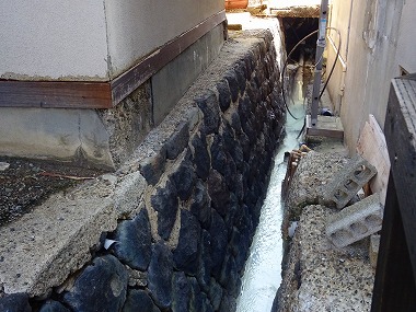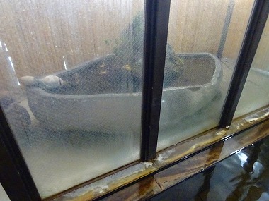 | さて朝ごはんのあと仕上げの一湯というわけで再び内風呂へ。それにしても宿泊&食堂棟と母屋の間にはしっかり温泉の川が流れていて、これはホントに建物や電化製品が傷むのもさもありなんというところです。施設の維持も大変だよなぁと思うと同時に、だからといって廃墟チックな建物をそのまま放置しておくのもナニですし、難しいところです。 |