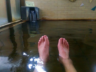 | え、いやそれは嬉しいんですがフロントにそのことを伝えてくれるんでしょうか?と思っておどおどしているタイミングで先ほどの女将さん?が登場。これまた「どうぞどうぞ」というわけで男湯の前に「清掃中」の標識を置いて下さいました。お2人、ありがとうございます貸し切りです! |