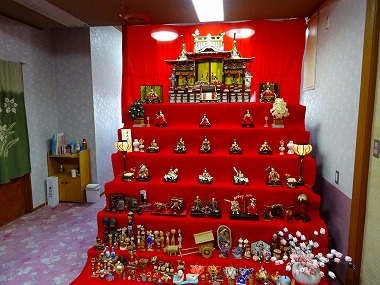 | そんなわけで目的地の吉本さんへ。入浴を乞うと「もう、溜まってるよね」と従業員さん同士の確認の上どうぞどうぞとなりました。ロビーには五段飾り+宮殿付きのひな飾りが。暗かったので撮影しませんでしたが由来のあるお皿なども展示されておりました。大正11年(1922年)創業ということですからあと数年で創業100年。地域の中核&街道筋として栄えてきたのでしょう。 |