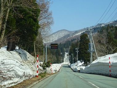 | 大石田界隈でR13から県道28号山刀伐峠越えの道に入ります。こちらの道もいつぞやの冬はよせばいいのにすっかり暗くなってからの峠越えで、前に中型トラックが走っているのに追いついてからは「つかず離れず」で安心感を得たんでしたっけ(雪道ビビラーなので)。 |
