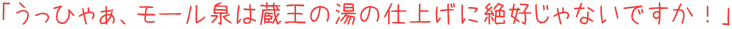 | ただしモール臭はそれほど強くなく、色付きもそれほど濃いものではありません。ただ、かけ流しの湯を口にしてみると確かな苦味が感じられ、鼻に抜ける臭いも独特。いやこの湯はなかなかいいや。しばらくのんびりしました。蔵王の湯に浸かるトキメキとはまた違って落ち着けるんですよ。 |