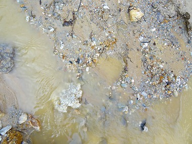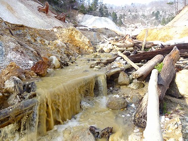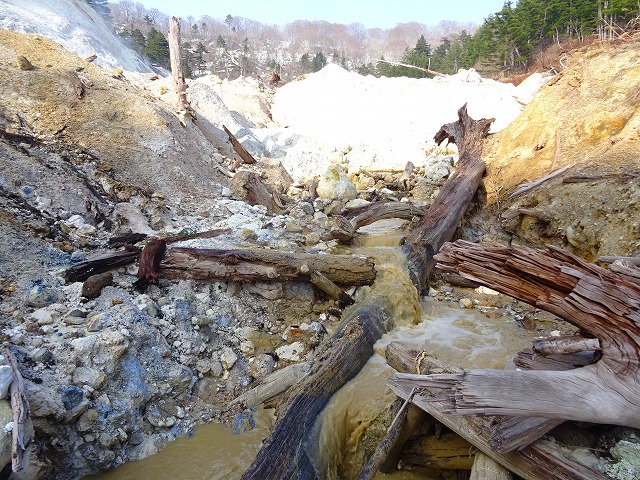 | 日本の古い言葉に「受領は倒るる所に土を掴め」というものがありますが、温泉ファンからすれば「ファンたるもの流るる湯には身をひたせ」というところでしょうかね(何か違う)。ちなみにもう少し登った方が泥は少なく源泉の割合が多かったと思われますが、まぁ初訪というわけでもなし、今回はここで勘弁しちゃるということにしたのでありました。 |