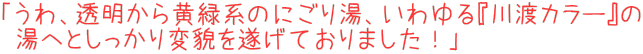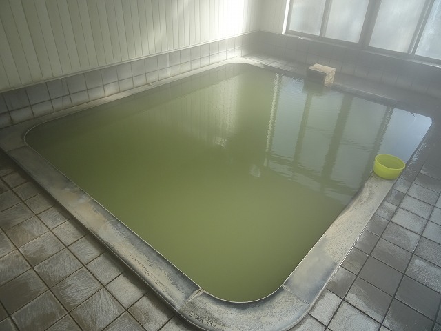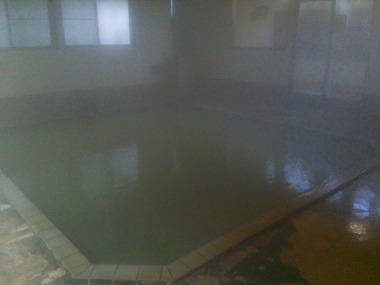 | ということですっかり明るくなったところで中浴場に行ってみましょう。前日と比べてお湯の色はどんなふうに変化しているのでしょう? |