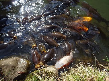 ![]() (左上画像、人の姿を見てすでに鯉軍団が寄ってきているのがわかります)。 ![]() |