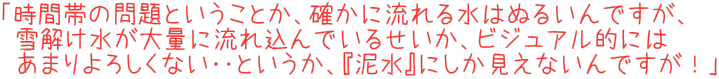 | 流れの温度は体感で30度以下しかありませんしこの色だし‥どうするTakema? |