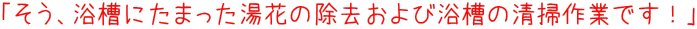 | 浴槽底には析出した湯花がたっぷりと沈殿しており床面が見えていません。これらを全て除去し、きれいな状態に戻さなくては。さてしかし、いつものことながらここで「営業期間外の掃除人のみに許された悦楽タイム」とまいりましょう。もうおわかりですね、 |