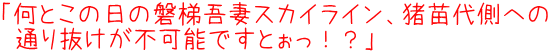 このあとはいわきJCTで常磐道に合流し、さ、あとは一本道!と気を楽にしたのですがそうは問屋が卸しませんでしたよ!というのも、 |