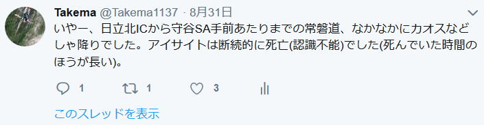 いわゆる「線状降水(豪雨)帯」のラインに常磐道がみごとに重なってしまったらしく、「ひたすら続く雷&どしゃ降り」はとにかくひどかったです。自分は国内と海外、四輪と二輪合わせれば60万km以上(たぶんもっと)は運転していると思うんですが、総合的に「この時の規模が一番凄かった」だろうと思います。雷は「ピカとバリ」が0.5秒くらいの間隔でのお祭りモードだったし(つまりは真上直近)、どしゃ降りの雨で高速ワイパーでももはや前が見えない状況ゆえスバルご自慢のアイサイトはあえなく意識不明。ま、その場合「普通の車」に戻るだけなんですけれど。 |