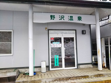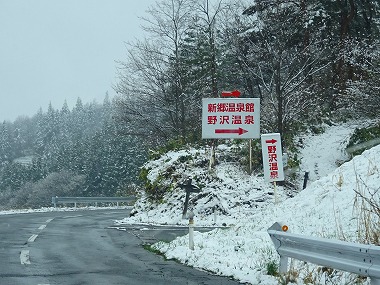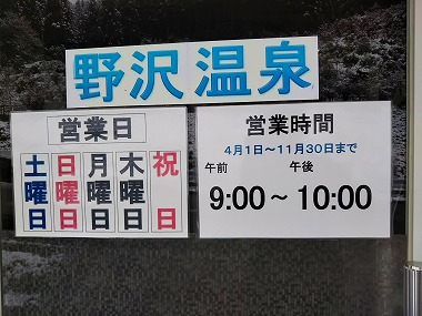 さてそんなわけで野沢温泉に到着です。うわー先客さん多いなー(この時点で浴室画像撮影はほぼ断念)。路駐なのですが、この時この施設から奥は冬季閉鎖区間だったので何の問題もありません(夏場はどうなのでしょうか?通行量は決して多くないはずなので同じかな?)。 |