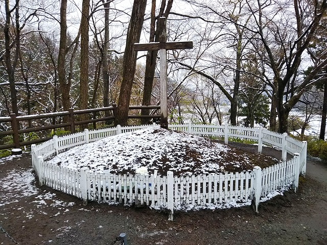 このあとは、以前も訪問した「キリストの里公園」へ。ご存じの通りイエスキリストはゴルゴダの丘ではなくここ新郷村戸来にて果てたというわけで(あくまで異説であり、村の公式サイトも「突拍子もない説」「イエス・キリストの墓であるかは判断を預けるとしても」というような表現を用い、むやみに宗教的聖地であるような記載はしていません。そりゃそうですよね)、まぁある意味B級観光地としての集客を目的にしているようではあります。で、自分としてはこういうの好きなんですからやっぱり来ちゃいますよ(まんまと策にはまるの図)。ちなみに村内には「ピラミッド」まであるというのですからたまりません(今回も行かなかったことを今になって後悔)。 |