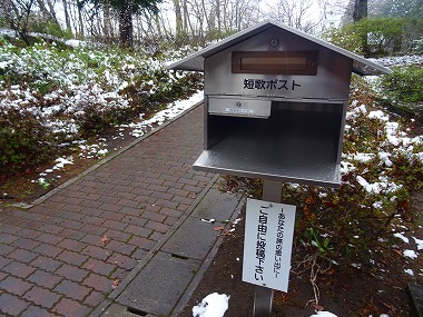 この場所にはなぜか「短歌ポスト」なるものが設置されており、優秀作品は右上画像のように石に刻まれて永く詠み手の栄誉を称えるということになっているようです。「『はやて』来て」という初句からは、この短歌がもう何年も前の作品であることがうかがえますが(鉄っちゃんならご存じの通り、2019/6現在、東北新幹線を走る「はやて」の本数は激減で青息吐息の状態なのです)。 |