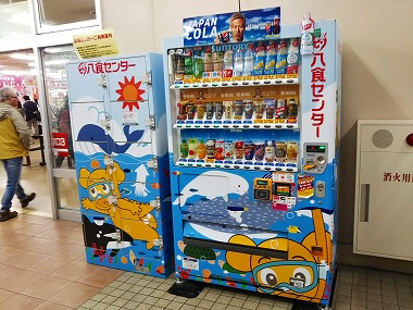 自販機やロッカーもオリジナルのラッピングが施されていてなかなかです。八食センター、栄えてますなぁと安心した上で次の場所に向かいます。 |
