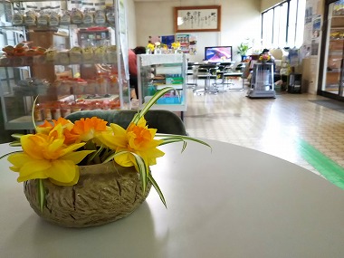 ![]() 右側はボケ画像で申しわけありませんが、ちゃんと生花の飾りがあちこちに。 |