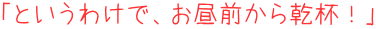 とはいえTakemaが手にしているのはノンアルコールの品ですがね(おしんこどんはもちろんビールを所望)。なお正午前(11:30)に席を確保したわれわれは余裕の着席でしたが、正午を回ってからはもう席待ちの列ができていました。そりゃそうだ、10連休の初日ですからね。ランチは早めに越したことはありませんという鉄則通りにゆったり完食。 |