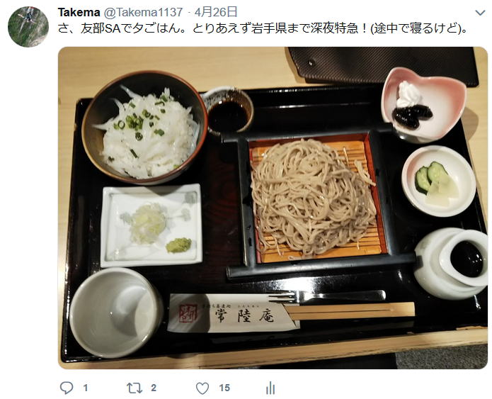 ここのお蕎麦屋はそこそこヨロシイので、これからも立ち寄ることもあるかなと。シラウオのミニ丼も付いていて満足度高しでした(ツユはもう少し一考の余地があるような気もしますが、嗜好の違いもあるのでまぁしょうがないかな)。ここからはずんずんと北上し、ならはのPAで休憩したあとは一気に上がって金成PAへ。GW初日未明とはいえさすがにこの時間にここまで上がってくる首都圏族はほぼいないとみえて駐車場も空いていました(そりゃそうだ)。 |