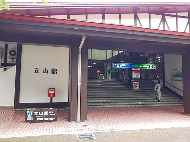 そんなわけで電鉄立山駅に到着。雨は降っておらず駅前の路面も乾いています。昨日の夜考えたイメージでは「雨だったら称名滝に行くしかないか」という感じでしたが(同じ雨でも弥陀ヶ原だと吹きっさらしなのでびしょ濡れでしょうが、称名滝は谷あいなので風はないだろうと想定)、とりあえず美女平までケーブルカーで上がります。 |