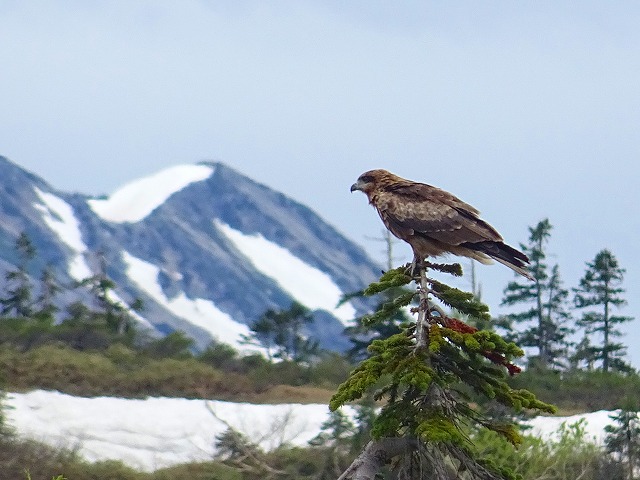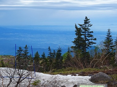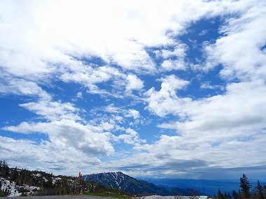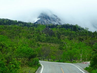 左上画像はカルデラ展望台への道だそうですが、こりゃ完全に雪道ですね。でも1週間前の撮影画像だそうで、そうなると「しばらく天気もよかったみたいだし、実は結構溶けているんじゃないの?」という天の邪鬼的発想が頭をもたげます(笑)。それと、カルデラ展望台は道中にたいした展望がないというわけで、ここは「弥陀ヶ原、行かれるところまで行く」という散策に切り替えました。雨も降っていないし風もほとんどなかったので(もちろん上下雨具は持参しましたよ)。 |