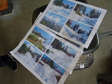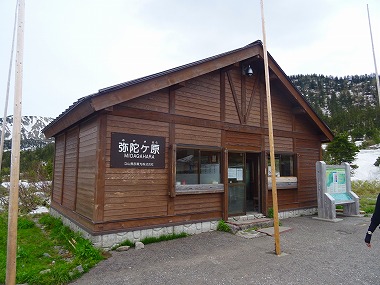 弥陀ヶ原のバス停に到着(12:10)。ここには2つの宿泊施設があり、しかもどちらも道路から少し離れているからか、ちゃんと立派なバス待合所があり、職員さんも常駐していますしコインロッカーもあります。まずは13:50発のバスを予約し、荷物を預け、この界隈の残雪状況を伺いましたところ‥ |