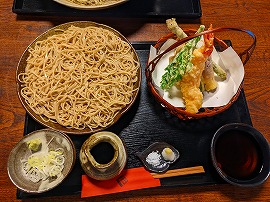 海老天おろしそばと天もりそばを注文。われわれより前にかなり多くの人が注文していたため、「下手をすると油が回って(へたって)いるかも‥」という一抹の不安がありましたが、そんな不安は天ぷらをひと口食べた瞬間に一蹴されました。カリっサクっとした揚がり具合とともに天ぷらのいい香りが鼻に抜けました。うん、いい!そしてお蕎麦もなかなかのもの。細身のお蕎麦は、かつて栃木県那須界隈にあった「季流」を思い起こさせます。お蕎麦ののどごしも良しでした。ごちそうさま。 |