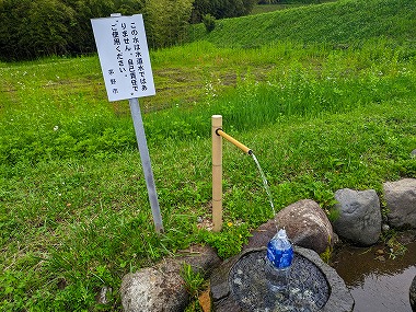 というわけで、道の駅はくしゅう内にある水汲み場にて6本ほど。一応ことわっておきますが、この湧水には「最小限の」塩素が加えられているという掲示があります。ただわれわれには全くその気配(というか臭い)は検知できませんので、本当に「わずかな量を念のため」という感じなのかも知れませんし、常時ではないのかもしれません(パイプ内のぬめり除去用だったりするかも知れません)。 |