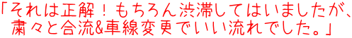 「変な合流」とは、いわゆる「ジッパー合流をせず合流車線の前後あちこちで合流」するということで、そうなると当然被合流車線のスピードが低下してしまい、さらにはそれを嫌う被合流車線の車両が手前で右側車線に車線変更することにより内側車線まで渋滞してしまうというパターンです。サンデードライバーの多い週末の上り線で実によく見られますが、平日のラッシュ時であればその心配も少なかったというわけです。渋滞はしていましたが一度も停止することなく(これ重要)上りエリアをクリア。 |