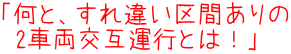 ![]() はいはーい、下っていきますよぉ♪ ![]() すれ違いもバッチリ(当然)というわけでお宿駅到着です。 ![]() |
