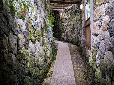 面白いのが、宿泊棟に続く通路の途中に「水飲み(水汲み)場」があること。そこには、 |