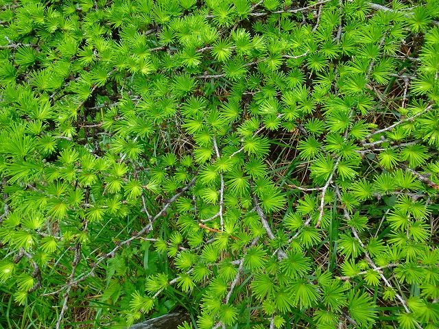 さらに歩みを進めていくと、ここにもレンゲツツジが咲いていましたし、針葉樹にも若葉が芽吹いていました。針葉樹はある意味自己主張が少ない気がしますが(いつも葉をつけているし紅葉とかもないので)、やはり新緑はいいですね。 |