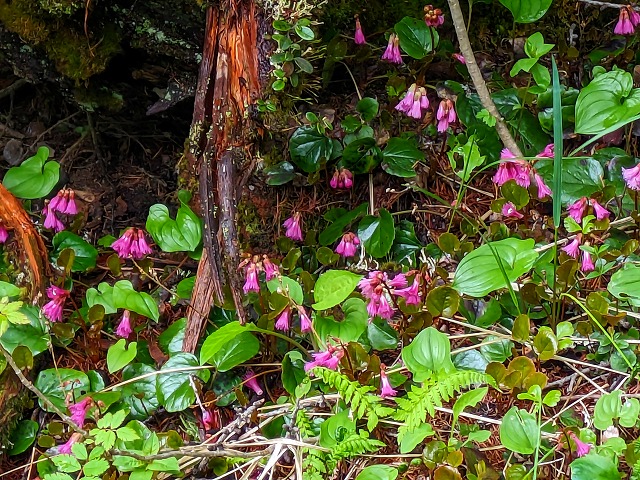 と思っていたら、この先の歩道のサイドはとにかくイワカガミだらけとなり、ほかの花を探す方が大変でした(笑)。 |