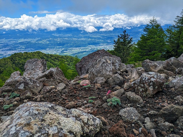その3 ミニハイクでコマクサを見に行く ![]() 上田平方面を眼下に見下ろしつつ、かの「女王」とやらを眺めます。 |