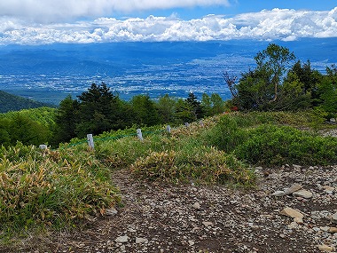 ちなみにここ三方ヶ峰に至る稜線からは佐久から小諸、上田方面が実によく見渡せます。花のない時期でも、景色を楽しむために歩くだけでも十分に楽しめます。本当にお勧め。逆にガスっていたら歩く意味なし芳一とも言えますが(苦笑)。 |