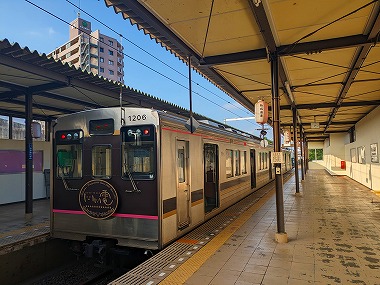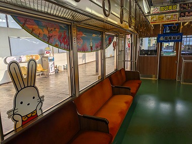 さすがに祝日(連休最終日)の朝7時過ぎ、早めに到着した自分の前にいたのはまだ乗務員もお客も誰もいないからっぽ電車でありました。もちろんこのあとお客さんはやってきましたが、ちょっとびっくりしたのは乗務員さんたち(飯坂線はワンマン運行ではないので運転手さん&車掌さん)が、発車時刻かなりぎりぎりになってやってきたことでした。まぁ早く来たところで準備が終わればあとはすることはないわけで、たぶんそういう乗務規範なのでしょう。 |